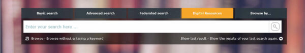 2. Create custom search tabs which target a specific set of resources in your catalog, for example, searching under the Digital Resources tab you see below will only yield results found as digital content and exclude content found on your shelves.